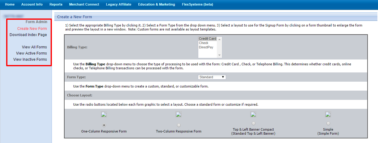 You need to add new form or you can setup existing form, for setup forms, go to "From Admin", you can find it in Account Info->Sub Account Admin page left side menu.