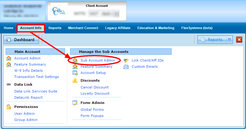 You need to setup your client sub-account and a from for collect payments via CCBill.