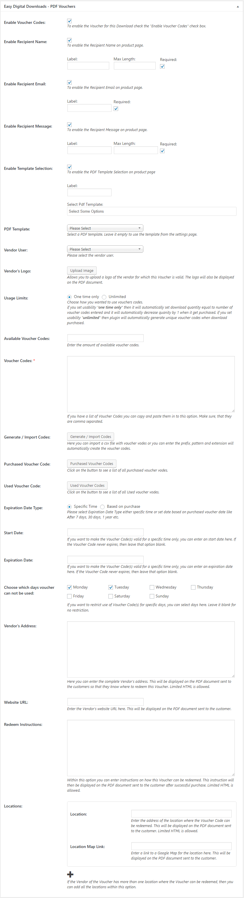 If the Vendor of the Voucher has more than one location where the Voucher can be redeemed, then you can add all the locations within this option.