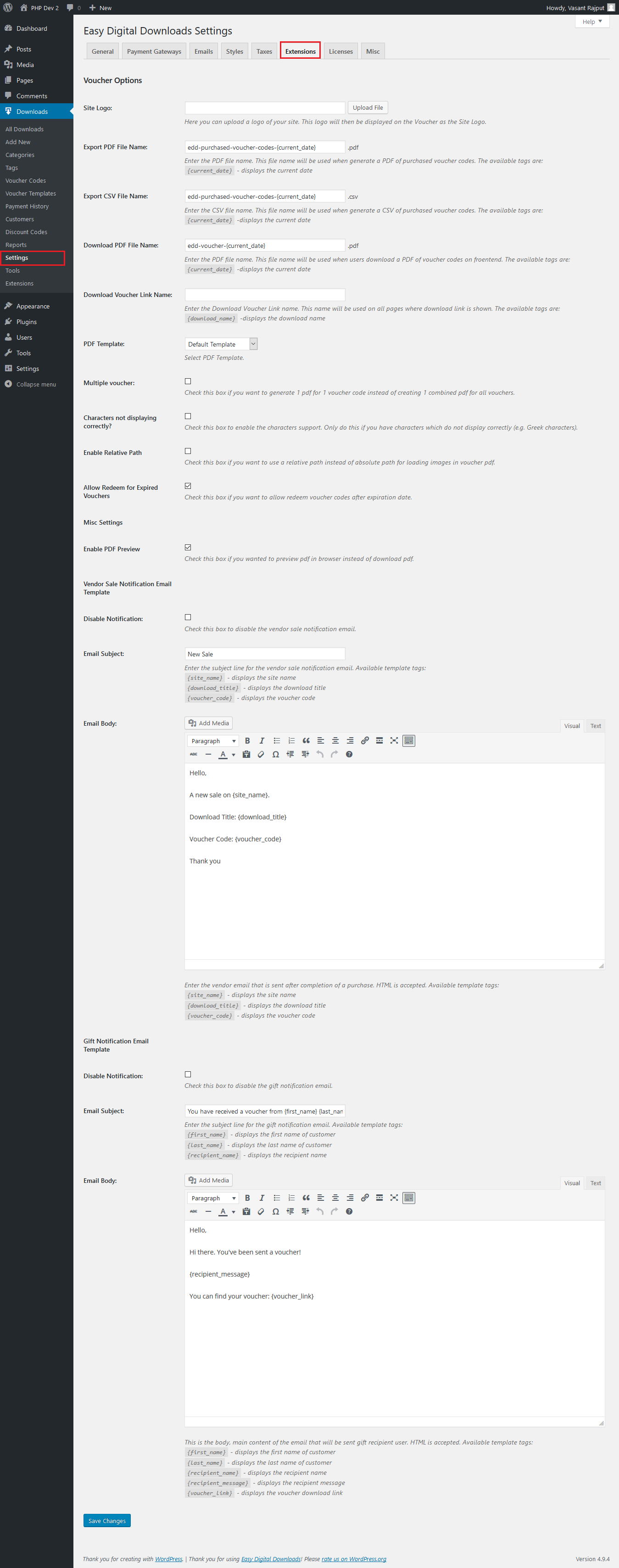 After installing the extension, a Voucher section will be added to the Easy Digital Downloads Extensions tab.