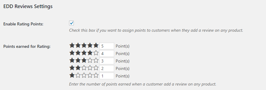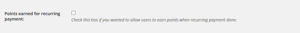 EDD Points & Rewards and recurring payments are fully integrated. If Easy Digital Downloads – Recurring Payments plugin is enabled, you will be able to see points settings for recurring payment. Once you enable this setting, your users will earn points every time when recurring payment is made.