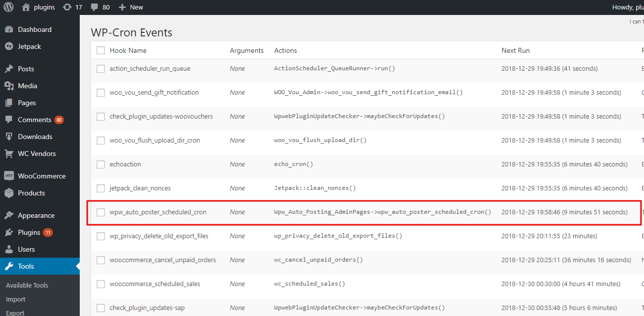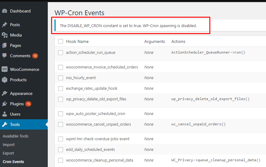 Step 1: First install WP Crontrol plugin and make sure cron is enabled on your domain. If cron is disabled you will see the message shown in the screenshot. Follow this path (Tool >> cron events)