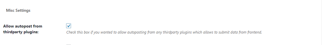 Please select the Allow auto post from third party plugins option from the plugin general setting as mention in below screenshot.