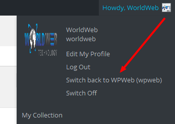 You can now go to your store and create a Collection through the storefront like a normal customer. When you are done creating the Collection and have saved it, to switch back to your admin account, go to the top right corner of your browser and select "Switch back to [Your Account Name Here]".