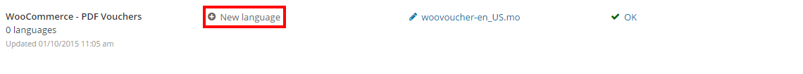 You can easily add new languages to a theme or a plugin using the Add New Language link: