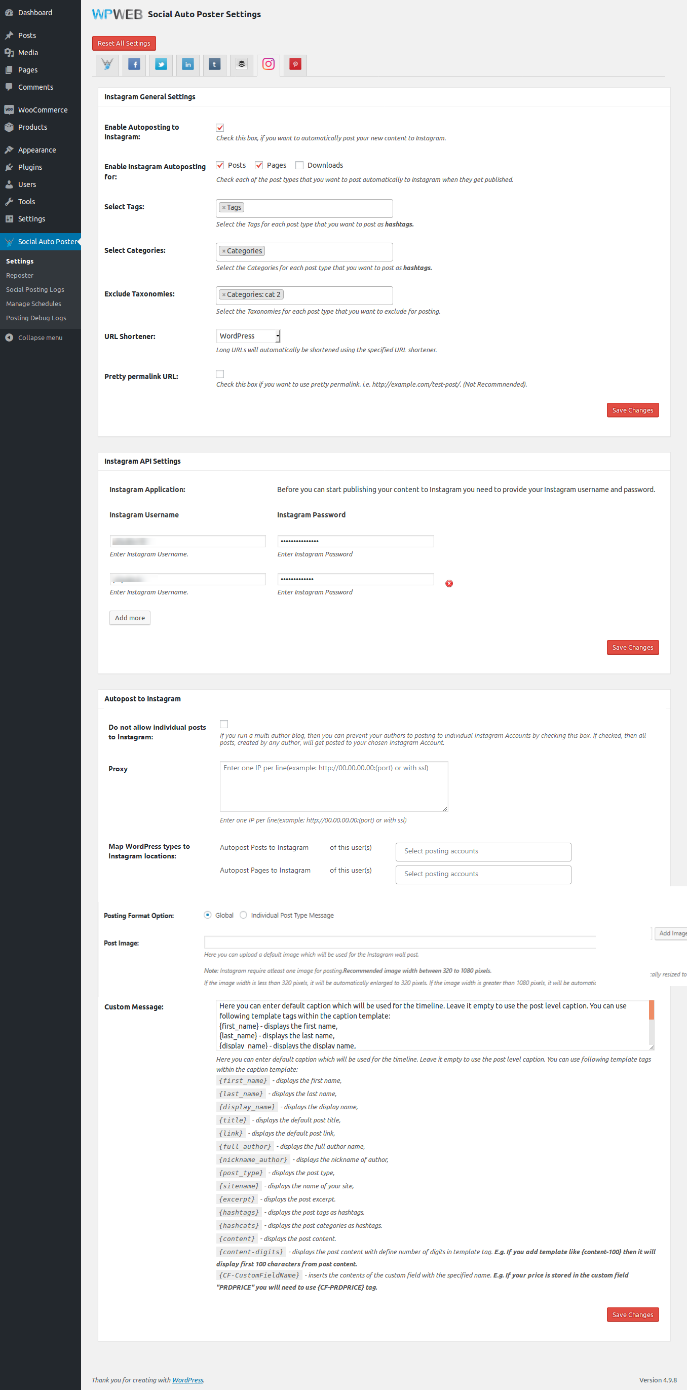 After you successfully installed the Addon you will see Instagram settings in Social Auto Poster settings.