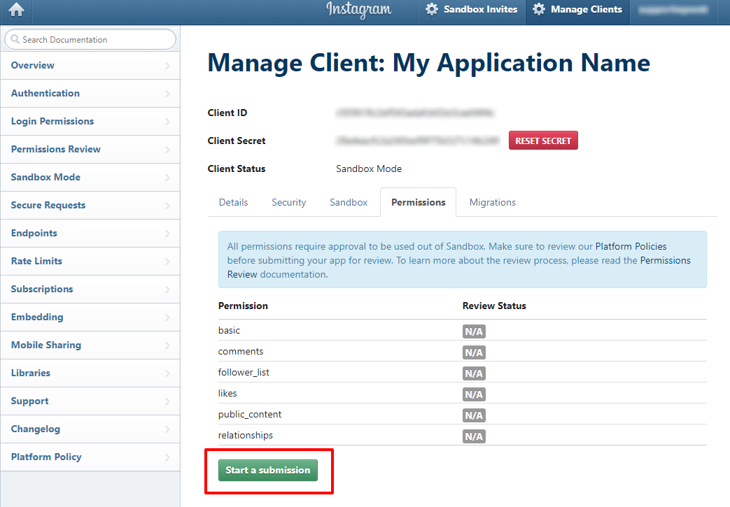 Submit your app for permissions review : Every new app created on the Instagram starts in Sandbox mode. To make it Live and fully access Instagram content, you must need to submit your app for review and approval. Now, go to permissions to Submit your app for Permissions Review. To know more about Permissions Review and its criteria go and visit https://www.instagram.com/developer/review/