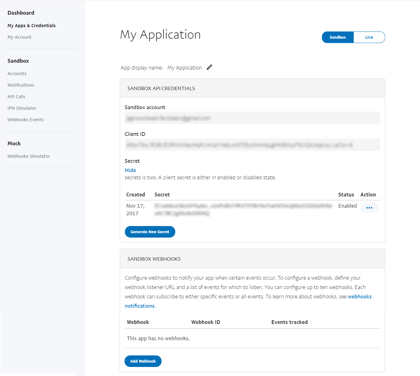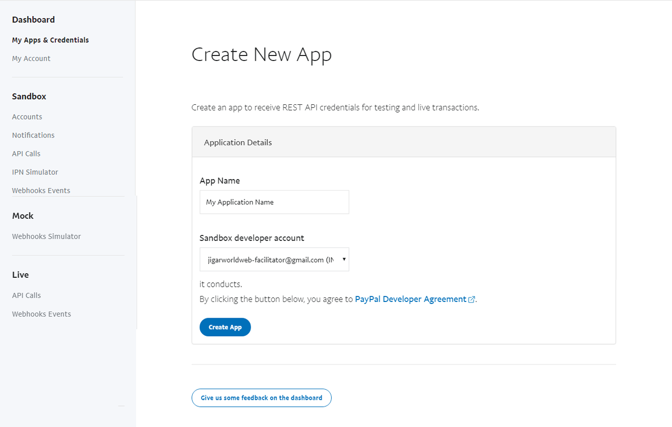 By clicking on Create App, it will redirect you to the settings page for your new PayPal App. page will look like as mentioned in the image below: