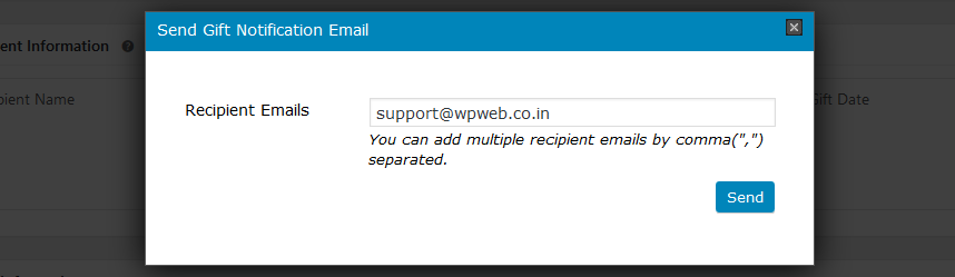 Clicking on "Send Now"/"Re-send" will open a popup where you can can add multiple recipient emails by comma(",") separated, as shown below :-