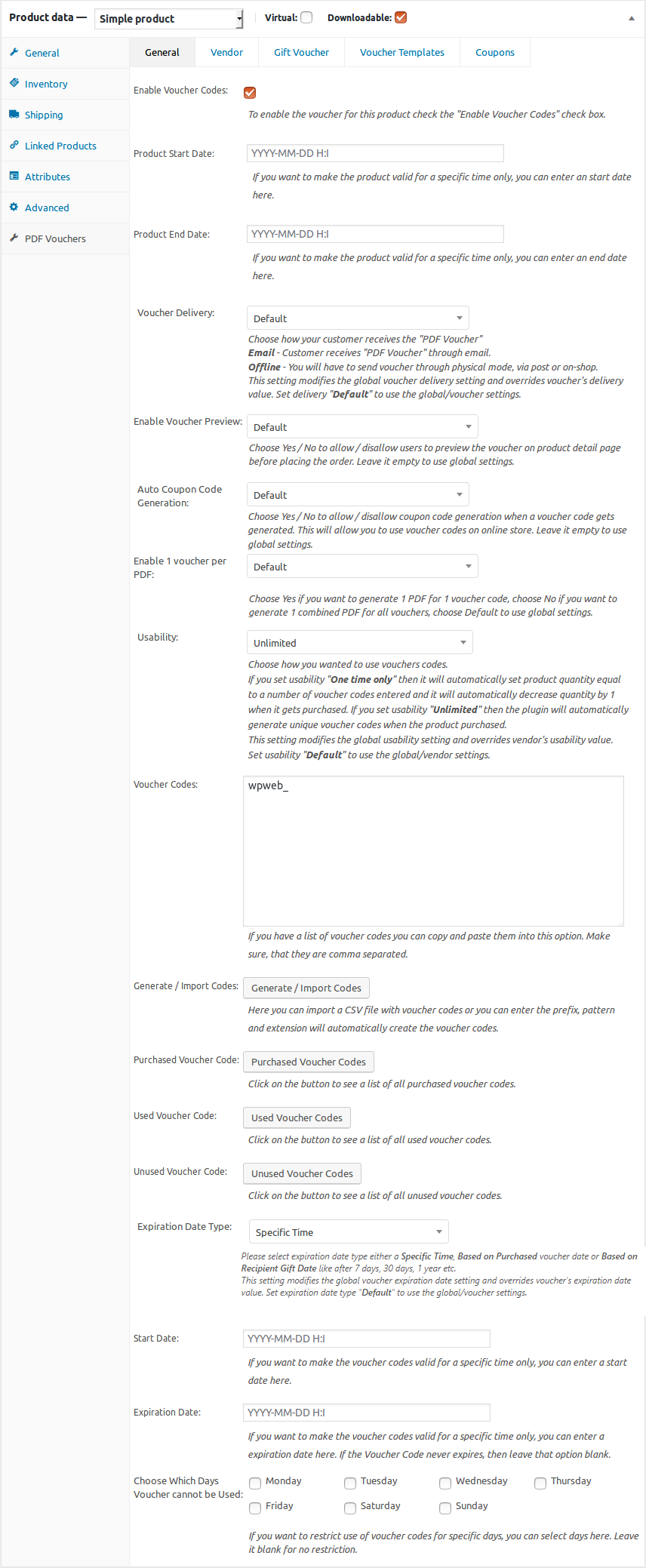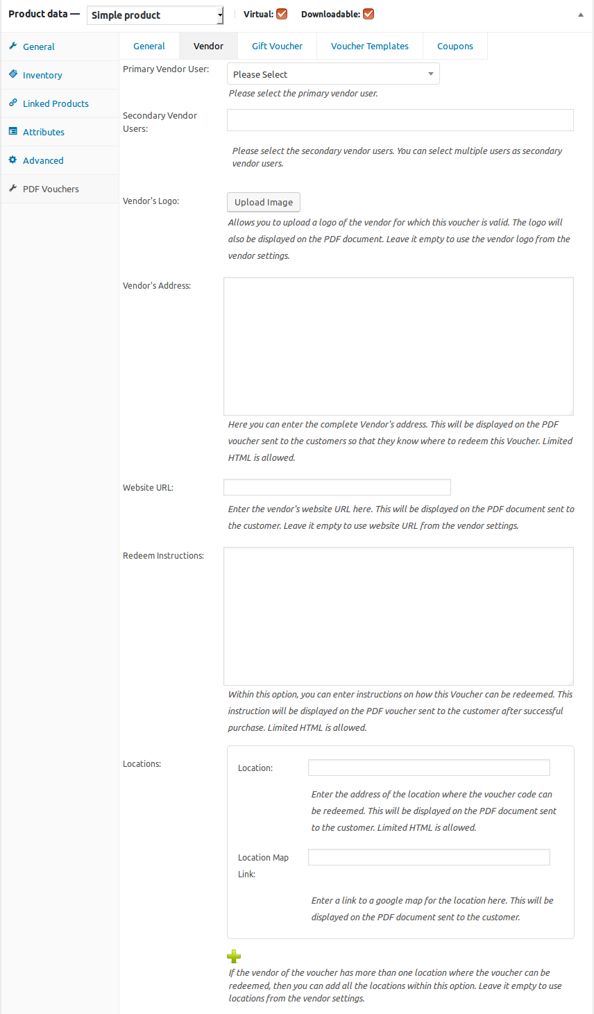 Demo: http://demo.wpweb.co.in/woocommerce-pdf-vouchers/wp-admin/post.php?post=297&action=edit