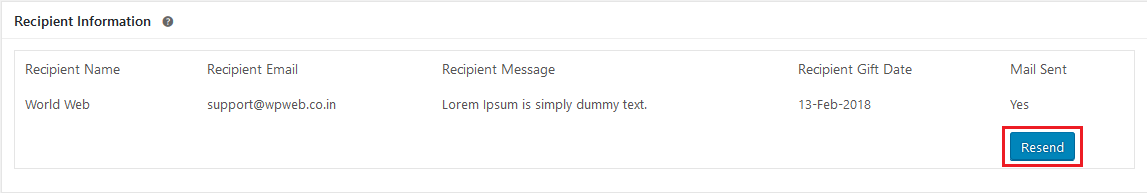 Now admin can send/re-send Gift Notification email to your customers. Please refer image below: