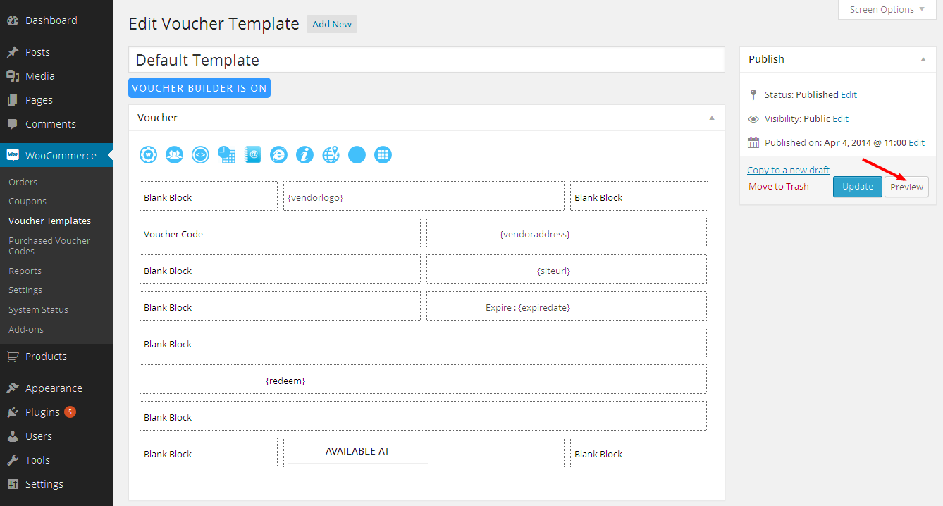 You can preview a voucher, complete with dummy data so you can easily see what your voucher PDF looks like before putting it up for sale. Note that you must save or update the voucher to see any changes in the voucher template Preview: