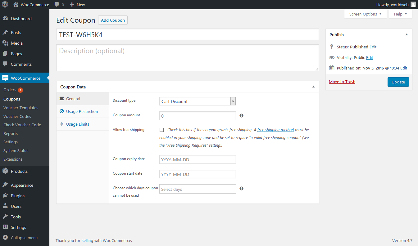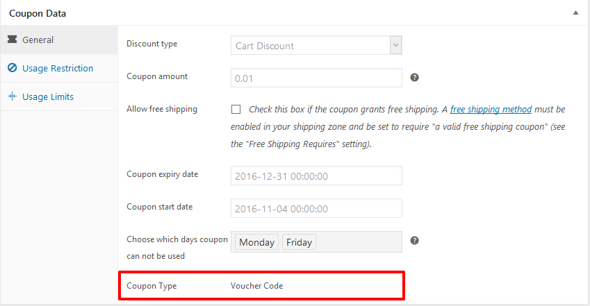 If you want to restrict use of Coupon Code for specific days, you can select days here. Leave it blank for no restriction.