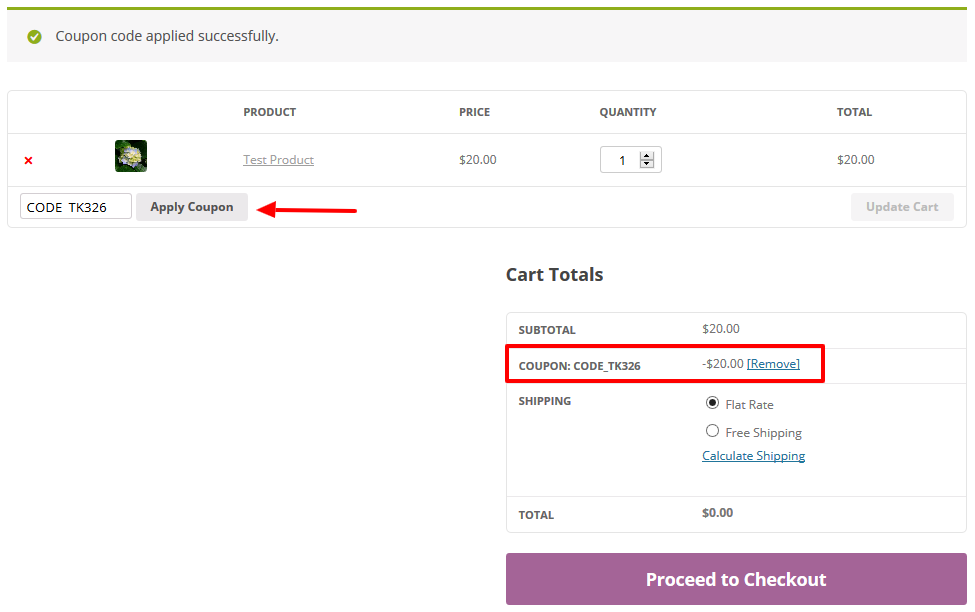Now you can redeem your voucher code same as normal woocommerce coupon code for your online store as mentioned in the image below: