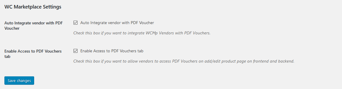 If WC Marketplace plugin is enabled, you will see below settings under WooCommerce > Settings > PDF Vouchers > Misc Settings as shown in below screenshot
