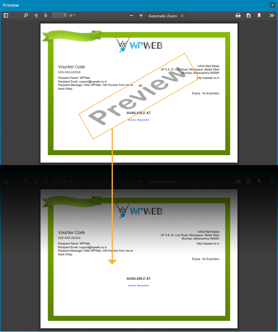You can add this code snippet to a custom plugin or your theme's functions.php to remove the preview image, while previewing the voucher on single product page.