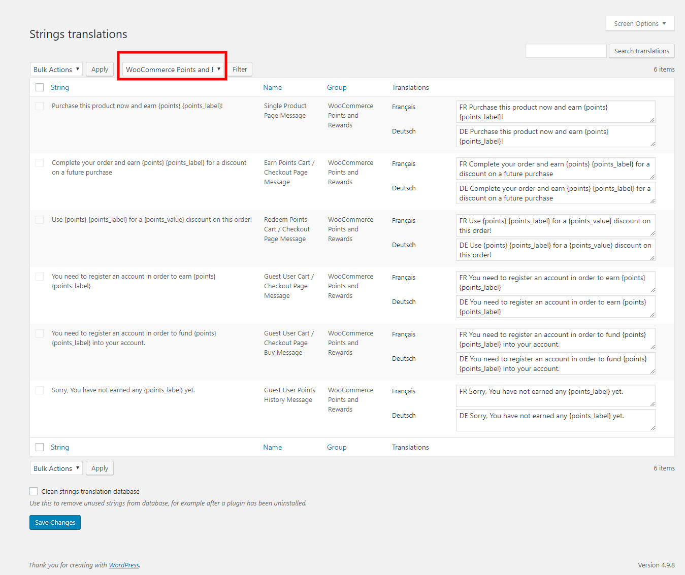 It will require PolyLang for WooCommerce plugin also. Once PolyLang and PolyLang for WooCommere plugin is activated, Admin can translate the string as shown in screenshot
