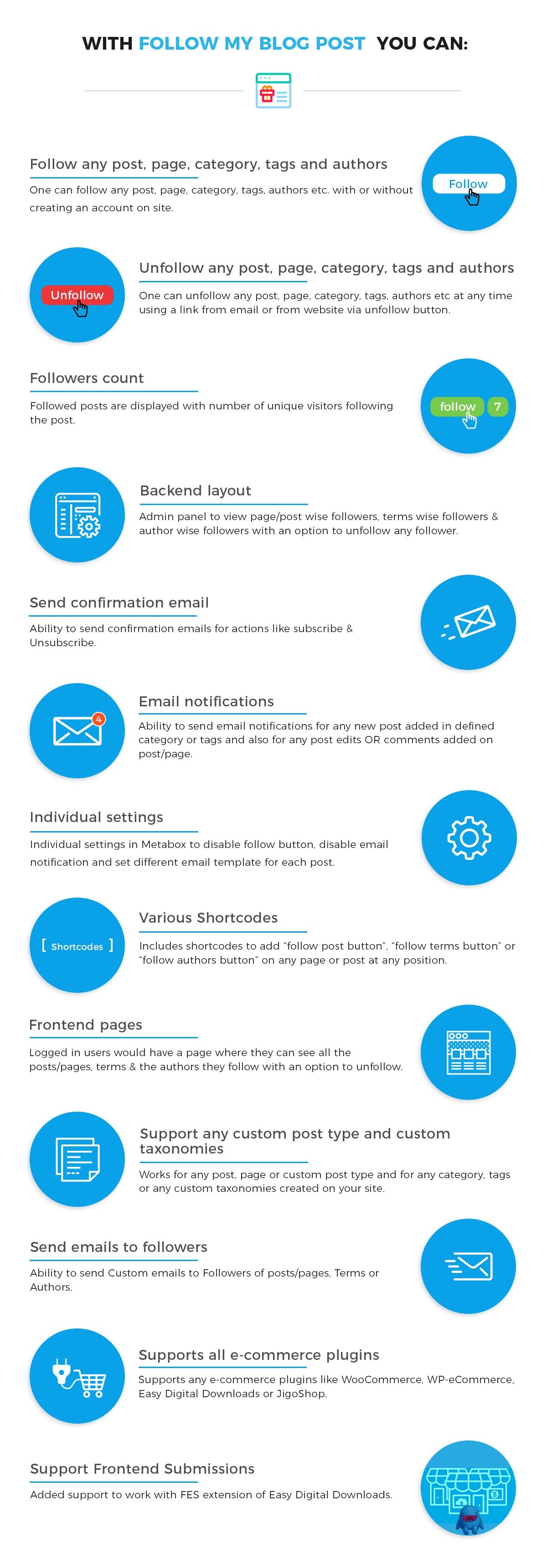 Follow My Blog Post plugin allows your visitors to follow changes on your site for particular post, page, category, tags, authors etc.